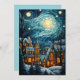 Ge dina högtidliga hälsningar en extra dimension med vårt charmiga julkort med dubbla sidor, där framsidan visar en vacker snötäckt by i levande blå toner under fullmåne och med redigerbar text på baksidan så att du kan anpassa den för din familj. Detta fantastiska konstverk fångar julens anda och är det perfekta tillskottet till dina högtidliga meddelanden. Dessutom finns det tillgängligt för direkt nedladdning, vilket säkerställer ett snabbt och smidigt sätt att skicka varma hälsningar till dina nära och kära. Sprid glädje och leenden med detta bedårande julkort i akvarellstil – ladda ner nu och dela julens magi!