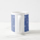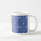 Ett vitt blått mönster med mjukt glödande träd och stjärnor dekorerar detta fredliga mugg.