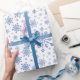 Blå julafton Snöflingor på Vintervit Presentpapper