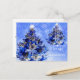 Blå Julgran, blomma och gräs Helg Vykort