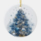 Blå julgran med dekorativa blå bollar. Kan anpassas med namn och text.