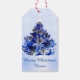 Anpassningsbar blå julgran och snöflingor med märkre för textpresenter