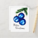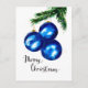 traditionella vattenfärgsbilder av blå julgran-dekorationer på ett färgat vykort för helgdagarna