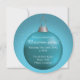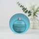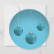 Den här festliga julfestinbjudan har en digitalt skapad blå julgranskula. Bakgrunden är en vacker blå gradient med några snöflingor. På andra sidan hänger ytterligare tre blå julgranskular på en silversträng.