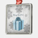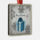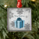 Dekorera Julgran i julhelg med en blå julklapp Helgdag. Utformningen av prydnadsföremål har en pulvertäckt julklapp som är försedd med grått och vitt snöflingor mot en grått-grinig bakgrund. Ytterligare presentartiklar och helgdag som är tillgängliga med den här designen också.