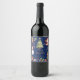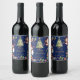 Blå jultomten Elf Snögubbe Vinflaska Etikett