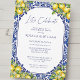 Blå Kakel Citron Medelhavsförlovningsfest Inbjudningar