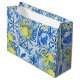 Denna livfulla presentpåse har ett franskt landsbygdsinspirerat citron- och blå kakel-mönster som ger en fräsch, kustnära estetik till vilken present som helst. De intrikata geometriska detaljerna och ljusa citrus-accenterna gör det till ett idealiskt val för hantverksmässig förpackning, sommarbröllop eller boutique-inspirerad varumärkning. Om du vill anpassa den här produkten, vänligen kontakta formgivaren.