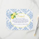 Skicka ytterligare information för din händelse med detta vackra Lemon Blue Tile Italian detaljer-kort. Med en Positano toskansk stil är denna design perfekt för alla vår- eller sommarhändelser.