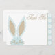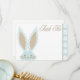 Detta är ett sött tack-kort. Det har en kanin i en pastell blå färg med bruna detaljer. Det finns vita prästkragar på en blå bakgrund på kaninens öron och på sidan. För att anpassa detta kort, klicka bara på knappen för anpassning. Baksidan av kortet är tom så att du kan lägga till ytterligare information.