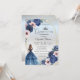 Silver glitter tiara, akvarell blå klänning och blomster ram på silver bakgrund. Ha kul på din quinceañera-fest med denna eleganta inbjudan. Bjud in dina gäster att höja ett glas och vara med och ha kul med dessa festliga inbjudningar.