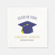 Ett enkelt blått lock och studentfest av tassel papper napkin. Dessa pappra blöjor har en blå sockel och student namn och high school.