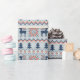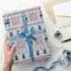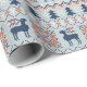 Papper utformning av sluten röd och blå omslutning inspirerad av klassiska, nordiska, stickade julsvatrar, med en charmerande mönster av poinsettias, renar, Julgranar och snöflingor. Perfekt för att lägga till en mysigt och traditionell beröring till dina helgdag, detta inslagna papper fångar värmen och julandan.
