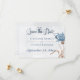 Mjuka blåkornblommor som blåser med mjukt brunt vete gör detta enkla bröllop spara datum-kort unikt. Man kan nästan känna den trevliga bryggningen av gräsmassornas flytta. Enkel, men ändå elegant. Jorden och blått är kombinationen av perfekt. Kortet är en del av Blåkornblommor och Vete Fält bröllopssviten med kort som skapats av enbart Farmhouse Press. Den är tillgänglig med eller utan den blå vattenfärgen tvättar bakgrund.