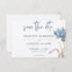 Mjuka blåkornblommor som blåser i en mjuk brun fält av torkade gräs gör detta enkla bröllop spara datum-kort modernt men rustiskt och unikt. Man kan nästan känna den trevliga bryggningen av gräsmassornas flytta. Enkel, men ändå är elegant, jordtoner och mjuka blåsor en kombination av perfekter. Baksidan av kortet bär temat fält. Skapat av Farmhouse Press.