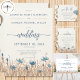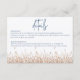 Mjuka blå kornblommor som blommar i ett mjukt tanbrunt fält av torkade gräs gör detta enkla bröllopsdetaljer kuvertkort modernt men ändå rustikt och unikt. Man kan nästan känna den milda brisen som rör om gräset. Enkelt, men elegant, jordtonerna och mjuka blå färger är den perfekta kombinationen. Baksidan av kortet bär fältets tema. Skapad av Simply Farmhouse Press.