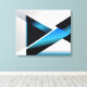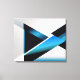 Geometriska former i blått och svart korsar varandra över en vit bakgrund och skapar en dynamisk och modern komposition. De överlappande formerna skapar djup och kontrast.