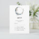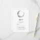 OSA kort med en mystisk illustration. Ett mörk blått halvmånsfärdigt måne med en elegant tunn cirkelkontur och vita blommans blommar längs kant.