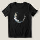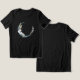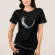 T-shirt med en mystisk illustration. Ett mörk blått halvmånsfärdigt måne med en elegant tunn cirkelkontur och vita blommans blommar längs kant.