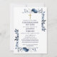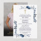 Denna eleganta, marinblå blommiga minneshögtid för liv och minne inbjudan kan anpassas med din information i modern typografi och foto på baksidan. Designad av Thisisnotme