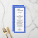 En bröllopsmeny med vackra bilder av blå krokus, tulpaner och blåklockor. Bakgrunden och bilderna kan anpassas. Originalkonst av W.B.