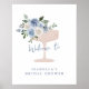 Välkommen gästerna med stil med denna skumplastskylt för bröllopsfesten med blå kronblad och Prosecco. Med akvarellblå blommor och en champagneglasdesign är den perfekt för trädgårdsfester, brunch och bubblig samvaro eller elegant vår- och sommarfirande. Anpassa med brudens namn och datum för en samordnad look.
