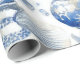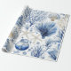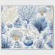 Inpackningspapper - Elegant blå och vit kusttoalettmönster med detaljerade koraller, snäckskal och sjöstjärnor illustrationer. Perfekt för strandälskare, kustdekor fans och de som njuter av klassiska havsinspirerade mönster.