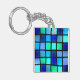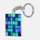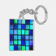 Den här nyckelkedjan har blå fyrkanter på den.