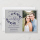Blå Laurel Löv Rustic Grått Bröllop Photo Spara Datumet