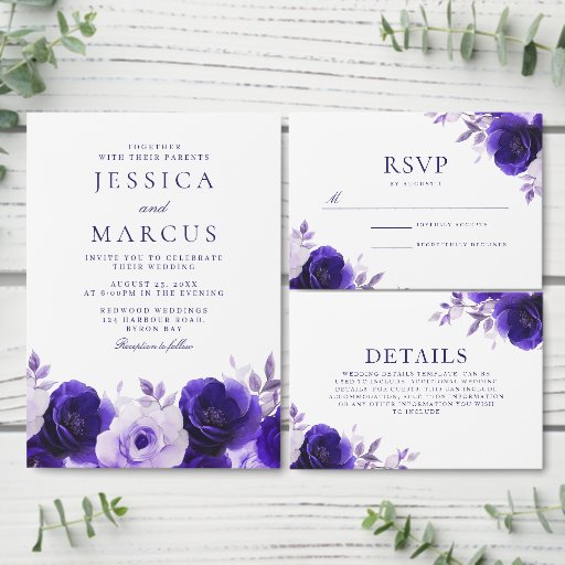 Blå legans: Midnight Navy Blue Ro Bröllop Inbjudningar