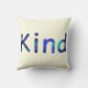 Flerfärgad virvel abstrakt konstnärlig design bestående av akvamarina, blå och lila penseldrag. Denna design är en handmålad akrylabstrakt konstnärlig design med en lös, målerisk, organisk känsla som kommer att lysa upp någons dag. På baksidan av denna kudde finns konstnärlig typografi som innehåller konstverket som visas på framsidan av kuddens design. Ordet "Kind" sitter på en krämfärgad bakgrund som kan ändras till en färg som du väljer genom att klicka på knappen för anpassning. Konstverk och typografi skapad av konstnären Catherine Sweetman