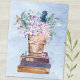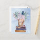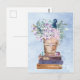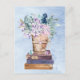 Blå Lila Böcker och Blommor Konst Vykort