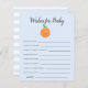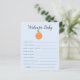 Söta lilla sötnos tema baby shower önskar för babykort med en orange frukt med ett leende. Texterna är redigerbara. Perfekt aktivitet att spela under showern och kommer definitivt att bli en fin souvenir! Denna blå design är perfekt för en pojkes shower.