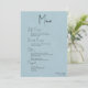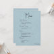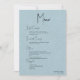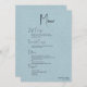 Whimsical minimalistic modern, anpassade black script typography, elegant bröllop menu. Den ljusblå färg-linen som tryckts i struktur tillför en aning organisk elegans av klassisk elegans. Andra färg finns tillgängliga.