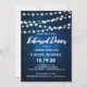Strängen av ljus på djupt blå bokeh-fotografibakgrunden Rehearsal Dinner-inbjudningar tillför din vackra dag enkel elegans. **Koordinerade mallar finns i samlingen som visas nedan eller genom att klistra in URL:en i webbläsaren: https://www.zazzle.com/collections/dark_blue_bokeh_string_lights_modern_wedding-119763416719442910?rf=238919973384052768&CMPN=share_dclit&lang=en&social=true