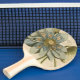 Blå Lotus blommar på Tan-bakgrunden med skrivning Pingisracket