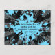 Cute-vycard-målning födelsedagsfest inbjudan för pojkar, eller tonåringar med blå och svart färgstänk på grungy grått, svart och blå solnedbrytande bakgrund. Lägg till dina uppgifter på framsidan och baksidan.