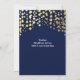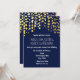 Blå marin bröllopsinbjudan med guld- och konfettidetaljer. Anpassa framsida och baksida för valfritt evenemang.