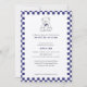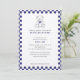 Den här charmerande inbjudan är en söt och sofistikerad ton för din babydusch. Den har en klassisk marin blå gingham ram som omger en enkel, handdragen nalle. Utformningen är en perfekt blandning av diskett och klassiskt stilar och erbjuder ett minimalt men hjärtligt sätt att välkomna ditt "lilla unge". Det rena linjer och mjuka bilderna skapar ett tidlöst utseende, skapar det som en minnesvärd keepé för ett sådant speciellt firande. Det är en söt, underskattad design för en klassisk babydusch.