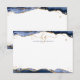 Blå marint agate Monogram Finare-skript Guld Glitt Anteckningskort