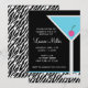 Börja din födelsedagskalas i stil genom att skicka inbjudningar till chicen med en blå martini på zebra bakgrund.