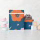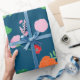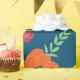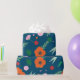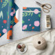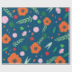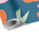 Blått med livfulla färger Blomstermönstrat presentpapper. Unikt, elegant och modernt. Med mina blomsterillustrationer och lövverk. Rosor, vallmo, blad, kronblad i orange, rosa, grönt, rött.