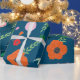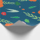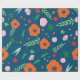 Blått med livfull färg Blommigt mönster presentpapper. Unikt, elegant och modernt. Med mina blomillustrationer och lövverk. Rosor, vallmo, blad, kronblad i orange, rosa, grönt, röda.