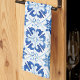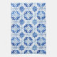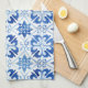 Blå och vita Medelhavs- kakel kökshanddukar. Vacker blå och vit Medelhavs- kakel bakgrund. Du kan lägga till text för att anpassa.