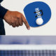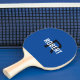 Modern pingpongpaddel med blå bakgrund, svart monogram och vit typografi namn. Anpassa med ditt namn och monogram.