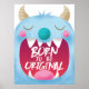 Söt dekoration för barnkammaren! Det är en söt illustration av en blå monster med vidöppen mun. Texten inuti munnen säger "född att vara originell". Coolt inspirerande citatdesign för pojkrum.