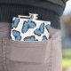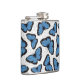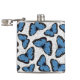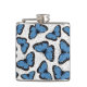 Sömlös mönster-design med blå morfobutterflugor på bakgrunden av blommor från vattenskogar.
