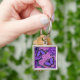 Blå morfoträdgård 2 fyrkantig silverfärgad nyckelring