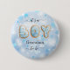 Mormor ska vara pojkbabyduschknapp med blå och vita kakor, och text Det är en pojke, vit blå hjärtebakgrund. Knappar för babydusch