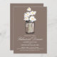 Bröllopsinbjudan till Övningsmiddag. Muralja glasburk fylld med Vita Prästkragar med en Mörkbrun Bakgrund. Om färgschemat inte är vad du ville ha, vänligen meddela mig så återskapar jag det åt dig, men vänligen kontakta mig innan du lägger en beställning. E-post paula@labellarue.com Lycka till med bröllopsplaneringen! Se till att välja din favoritpapp för att få det tryckt på.
